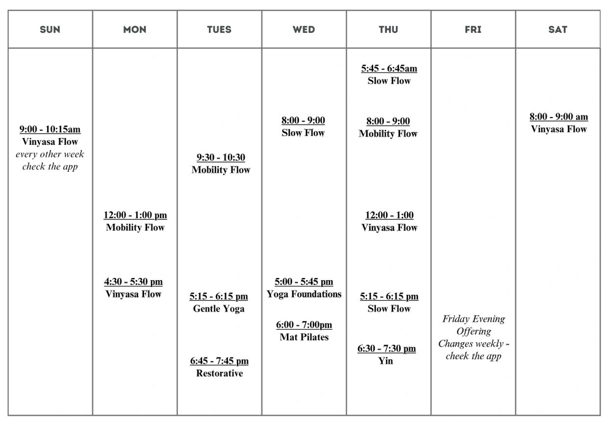 Above is our weekly class schedule.